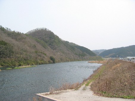 吉井川は津山から南に、高くはない山間を結構水量豊かに流れます。こんな感じ。