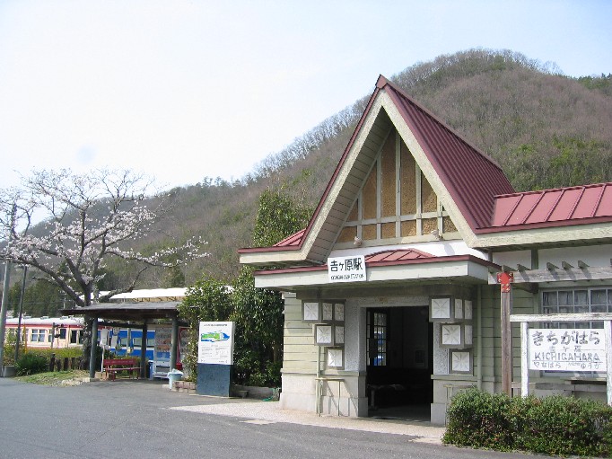 まずはサイクリングロードの起点へ。柵原から一駅、吉ヶ原(きちがはら)という駅が鉱山